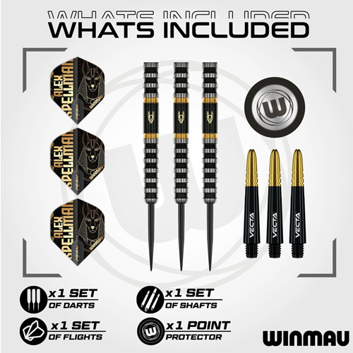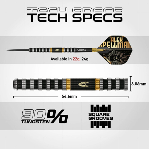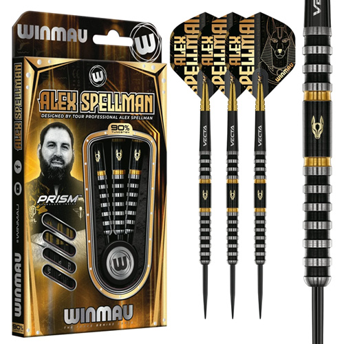Matched with black and gold Vecta stems and an Egyptian Anubis themed flight in shimmering gold foil, this set embodies Spellman’s ruthless accuracy and unmistakable style. For players who demand their darts look as sharp as they perform, the Alex Spellman Signature Series 1 is the ultimate weapon